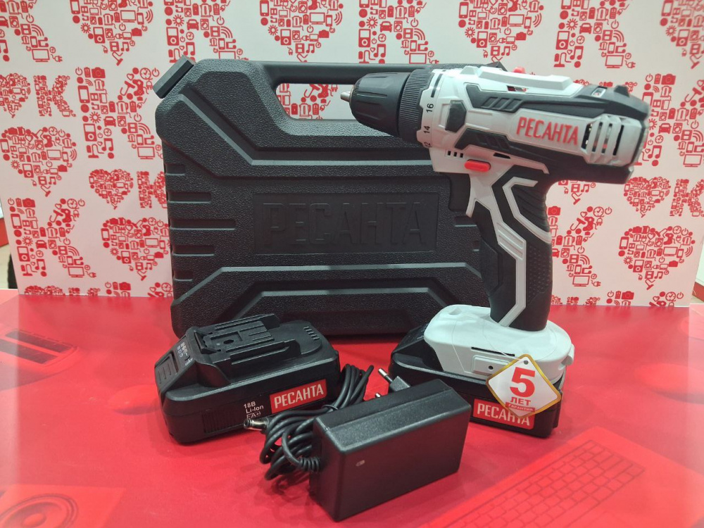 Дрель шуруповерт Ресанта ДА-18-2ЛК 2 АКБ