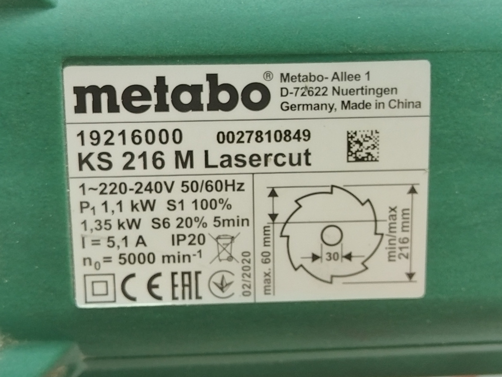 Торцовочная пила Metabo KS 216 M